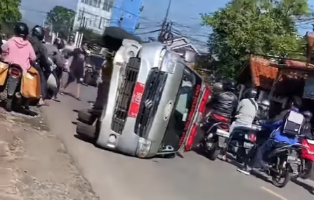 Berdasarkan informasi, insiden bermula saat ambulans berusaha menghindari sepeda motor yang melaju dari arah berlawanan. Dalam upaya menghindar, kendaraan medis tersebut kehilangan kendali hingga akhirnya terguling di badan jalan.