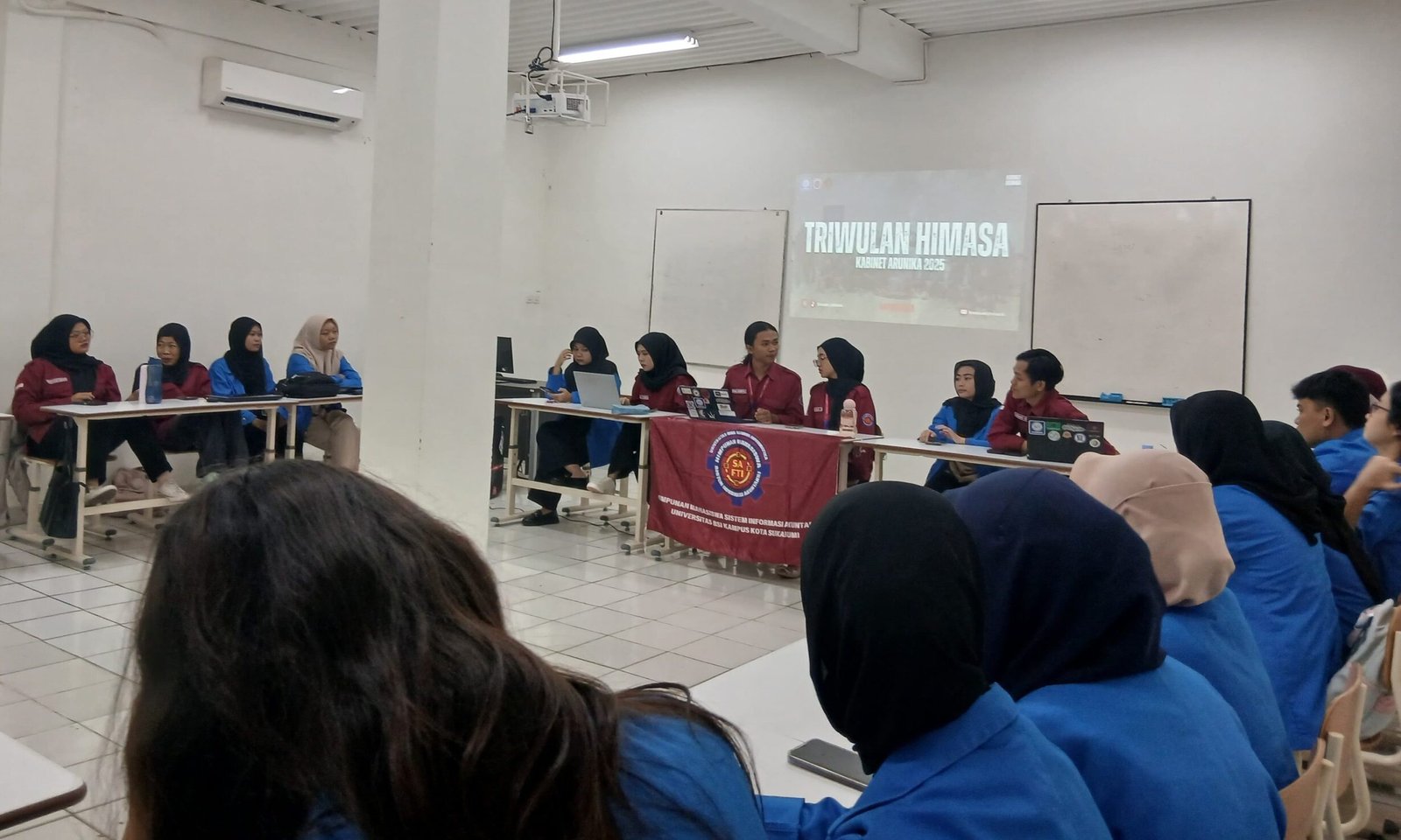 Sukabumihitz – Himpunan Mahasiswa Sistem Informasi Akuntansi (HIMASA) UBSI Sukabumi menggelar rapat triwulan pada Rabu (16/4) di Ruang 301, Kampus B UBSI Sukabumi. Pengurus HIMASA, menghadiri rapat triwulan ini termasuk Badan Pengurus Harian (BPH) dan kelima departemen. Kelima Departemen HIMASA: PSDM, Akademik, Hubungan dan Pengabdian Masyarakat, Ekonomi, dan Cyber Media.
