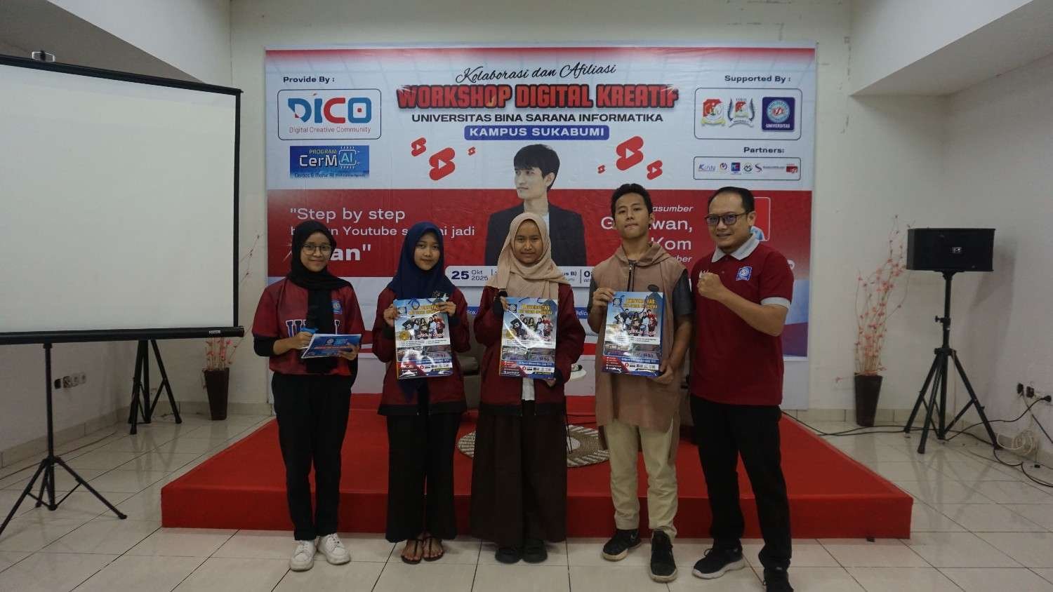 Sukabumihitz – Workshop Digital Kreatif bertajuk “Step by Step Bangun YouTube sampai Jadi Cuan” sukses digelar pada Sabtu, (25/10), di Aula Kampus B UBSI Sukabumi. Komunitas DICO (Digital Creative Community) menyelenggarakan kegiatan ini dengan dukungan UBSI Sukabumi. Selain itu, kolaborasi dengan FOKSI juga menarik minat pelajar, mahasiswa, dan peserta umum yang ingin mengubah konten kreatif menjadi sumber penghasilan.
