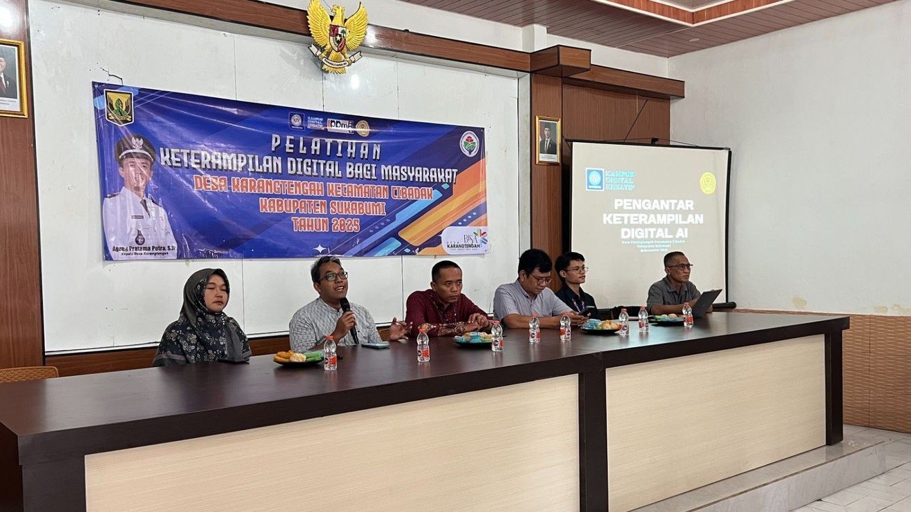 Sukabumihitz – Pemanfaatan kecerdasan buatan untuk membuat konten digital kini semakin mudah dipelajari. Hal itu terlihat dalam pelatihan AI yang digelar untuk unsur PKK Desa Karangtengah oleh Program Studi Sistem Informasi Universitas Bina Sarana Informatika (UBSI) Kampus Sukabumi pada Sabtu (15/11). Acara berlangsung di Aula Kantor Desa Karangtengah dan menekankan pembelajaran materi AI secara praktis, khususnya pembuatan video kreatif berbasis teknologi otomatis.