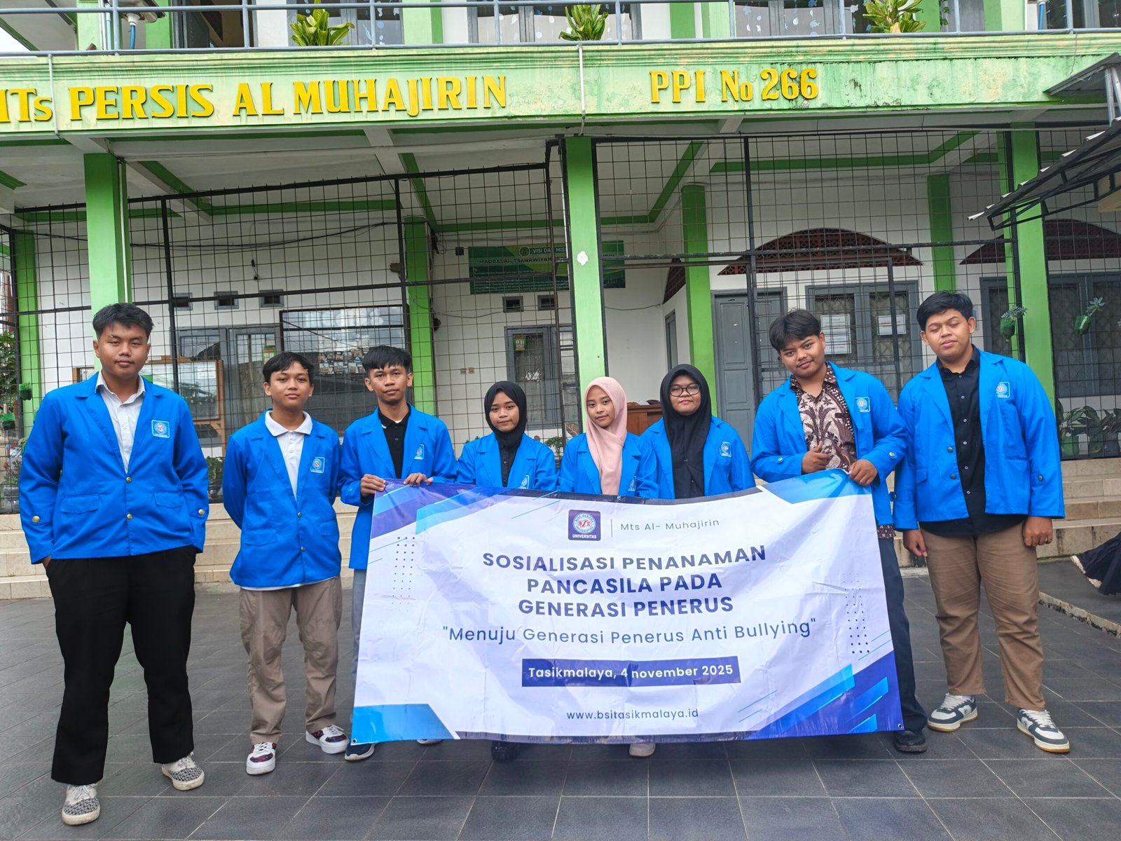 Sukabumihitz – Mahasiswa Universitas Bina Sarana Informatika (UBSI) Kota Tasikmalaya sukses menggelar kegiatan pengabdian masyarakat pada Selasa, 4 November 2025. Tim mahasiswa memilih MTS Persis Al-Muhajirin sebagai lokasi utama untuk menjalankan program penting ini. Langkah ini merupakan bagian integral dari implementasi mata kuliah Pendidikan Pancasila di lingkungan kampus. Fokus utama para mahasiswa tertuju tajam pada upaya sosialisasi pencegahan tindakan bullying atau perundungan.