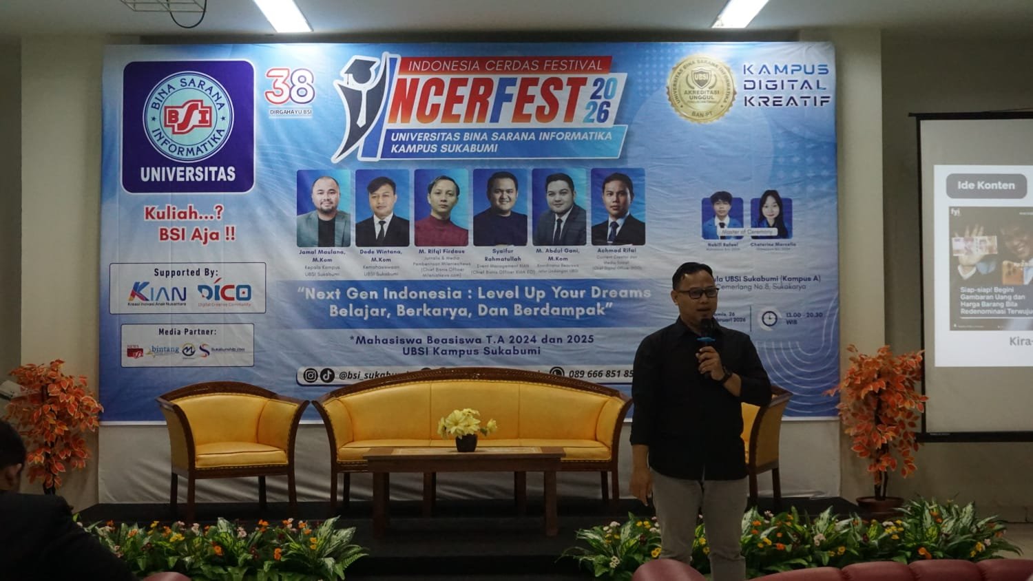 Mengusung tema “Next Gen Indonesia: Level Up Your Dreams – Belajar, Berkarya, dan Berdampak”, INCERFEST 2026 menjadi ruang diskusi strategis antara mahasiswa dan para praktisi industri. Melalui kegiatan ini, mahasiswa memperoleh pandangan baru yang relevan dengan perkembangan teknologi dan kebutuhan industri kreatif.