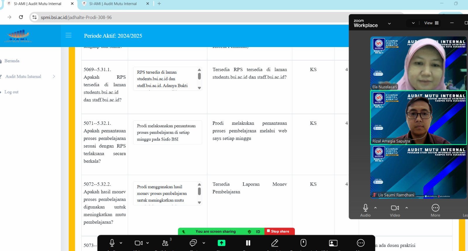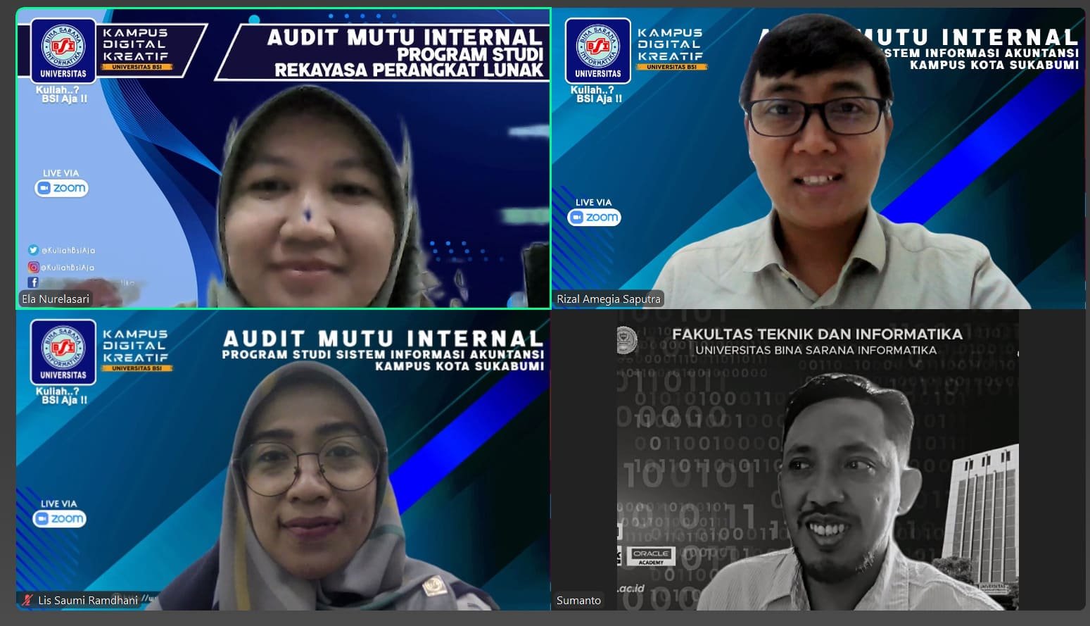 Sukabumihitz – Program Studi Sistem Informasi Akuntansi UBSI Sukabumi melaksanakan Audit Mutu Internal sebagai bagian dari upaya berkelanjutan untuk meningkatkan mutu akademik dan tata kelola program studi. Kegiatan ini berlangsung selama dua hari secara daring melalui Google Meet pada Senin lalu (04/08) dan Senin berikutnya (11/08).