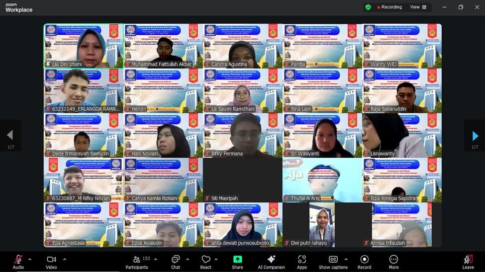 Sukabumihitz – Memasuki era transformasi digital, kompetensi menjadi kunci utama bagi mahasiswa untuk bersaing di dunia kerja. Menjawab tantangan tersebut, Program Studi Sistem Informasi Akuntansi (SIA) Universitas Bina Sarana Informatika menyelenggarakan Pembekalan Sertifikasi Kompetensi Teknisi Akuntansi Madya secara daring pada Senin (05/01/2026).