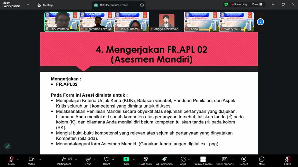Selanjutnya, Rifky Permana hadir sebagai narasumber utama dan memaparkan materi pembekalan secara sistematis. Ia menjelaskan ruang lingkup sertifikasi Teknisi Akuntansi Madya, kisi-kisi kompetensi yang diuji, serta tips praktis menghadapi proses sertifikasi. Dengan pendekatan yang aplikatif, Rifky mengajak peserta untuk memahami konsep sekaligus mengaitkannya dengan kebutuhan industri saat ini.