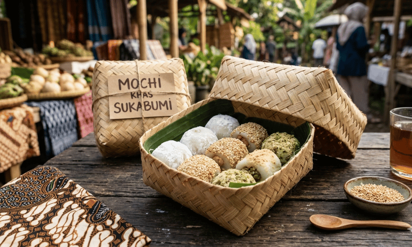 Tak lengkap rasanya berkunjung ke Sukabumi tanpa mencicipi mochi. Sebagai salah satu ikon kuliner, kue berbahan dasar tepung ketan ini memiliki tekstur kenyal dengan isian kacang manis. Selain itu, salah satu tempat terkenal untuk mencicipinya adalah Mochi Lampion Kaswari. Mochi ini hadir dalam kotak bambu dan cocok sebagai oleh-oleh khas.